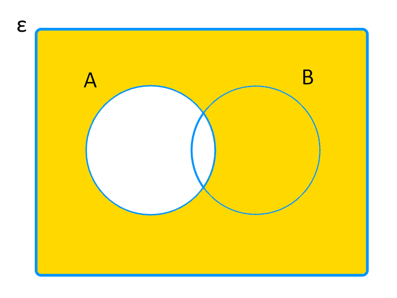 Le complément d'un ensemble A représente tous les éléments de l'univers des possibles qui n'appartiennent pas à A. En d'autres mots, dans un diagramme de Venn, on peut représenter le complément de A par cette partie jaune :