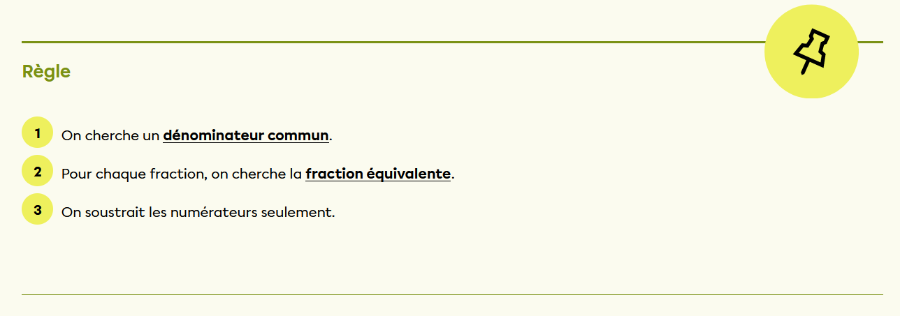 Soustraction de fractions :