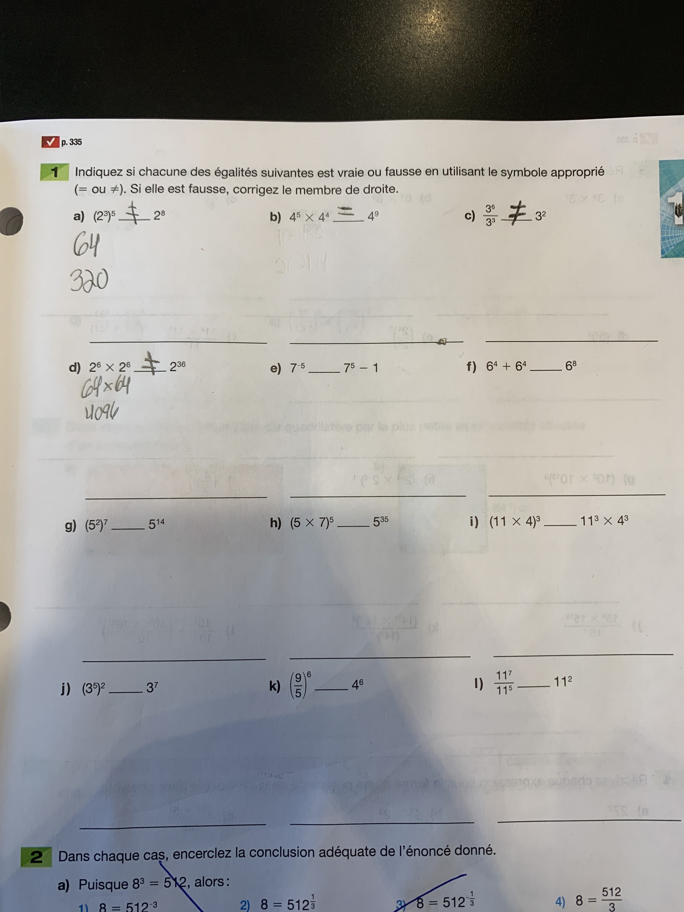 J’ai besoin d’aide sur la Lois des exposants