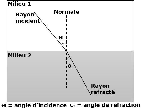 Losrqu'on fait des calculs de réfraction, il est utile de connaître les indices de réfractions des environnements. Dans ton cas, il s'agit de l'eau et de l'air.