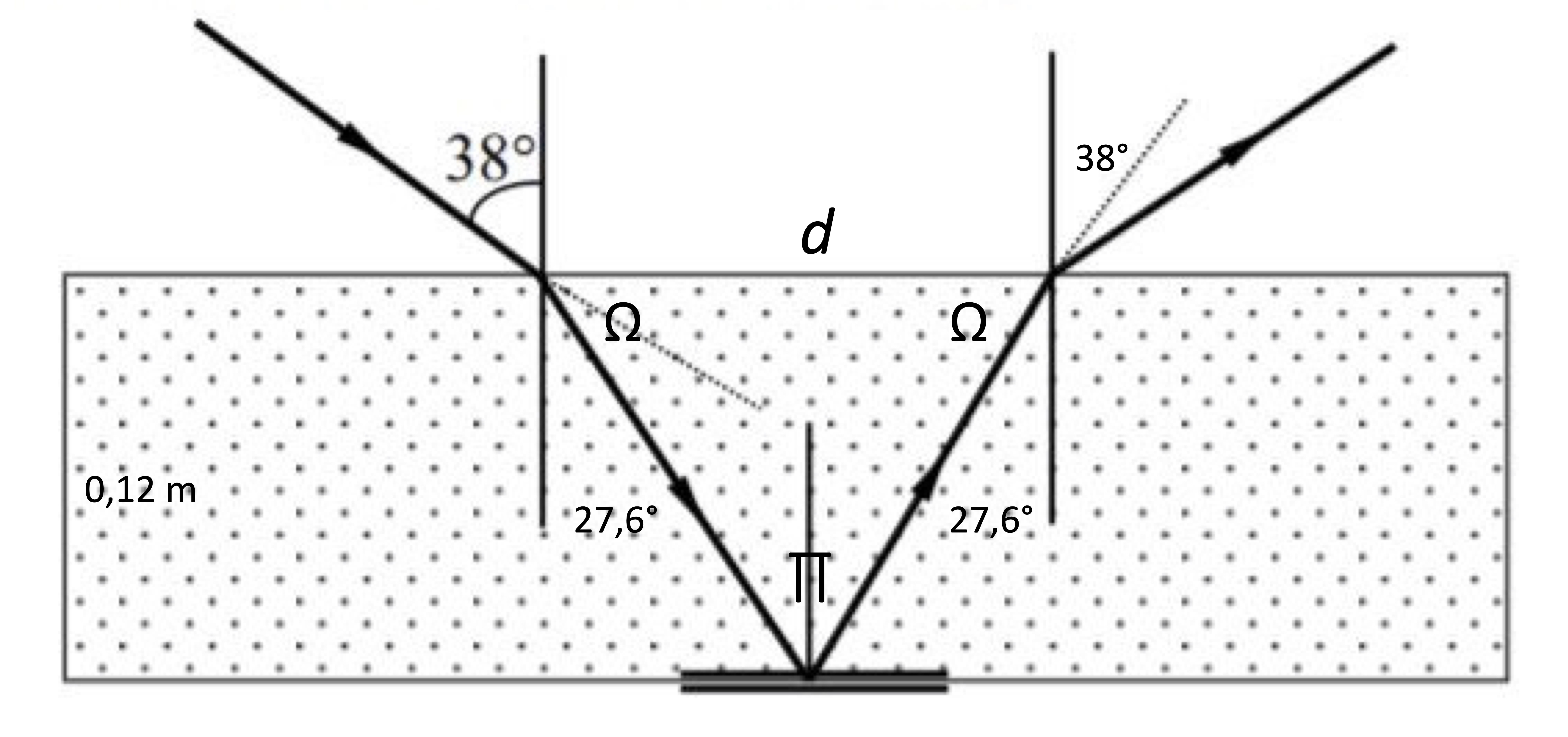 $$ \frac{sin(Ω)}{0,12\:m}=\frac{sin(\frac{∏}{2})}{\frac{d}{2}} $$