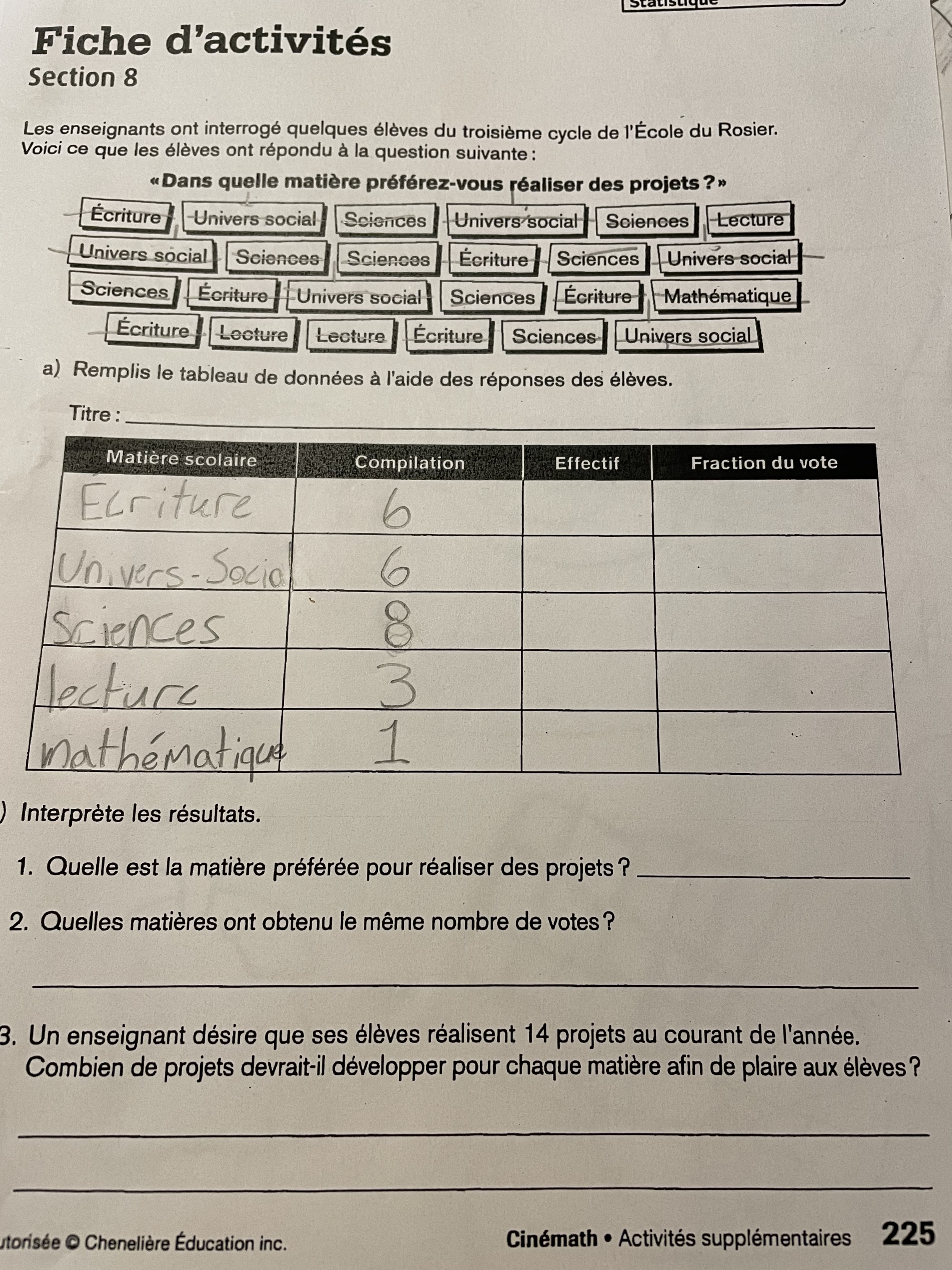 L'effectif, c'est le nombre de votes en tout, autrement dit le nombre d'élèves.