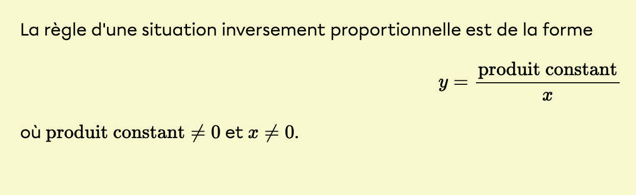 Ceci étant dit, je t’invite à cliquer sur le lien ci-dessous afin de revoir ces règles ainsi qu’en apprendre davantage au sujet des situations directement ou inversement proportionnelles.