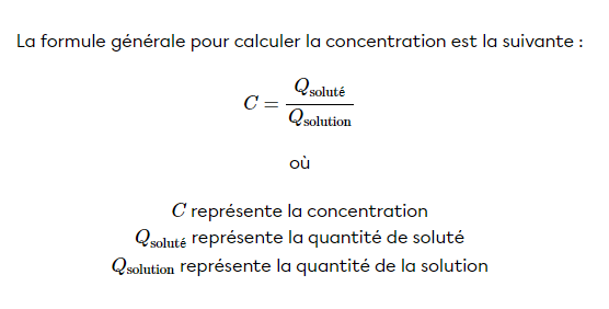 Pour trouver la réponse à cette question, tu as besoin de la formule de la concentration, la voici: