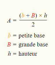 La formule d'aire de trapèze est :