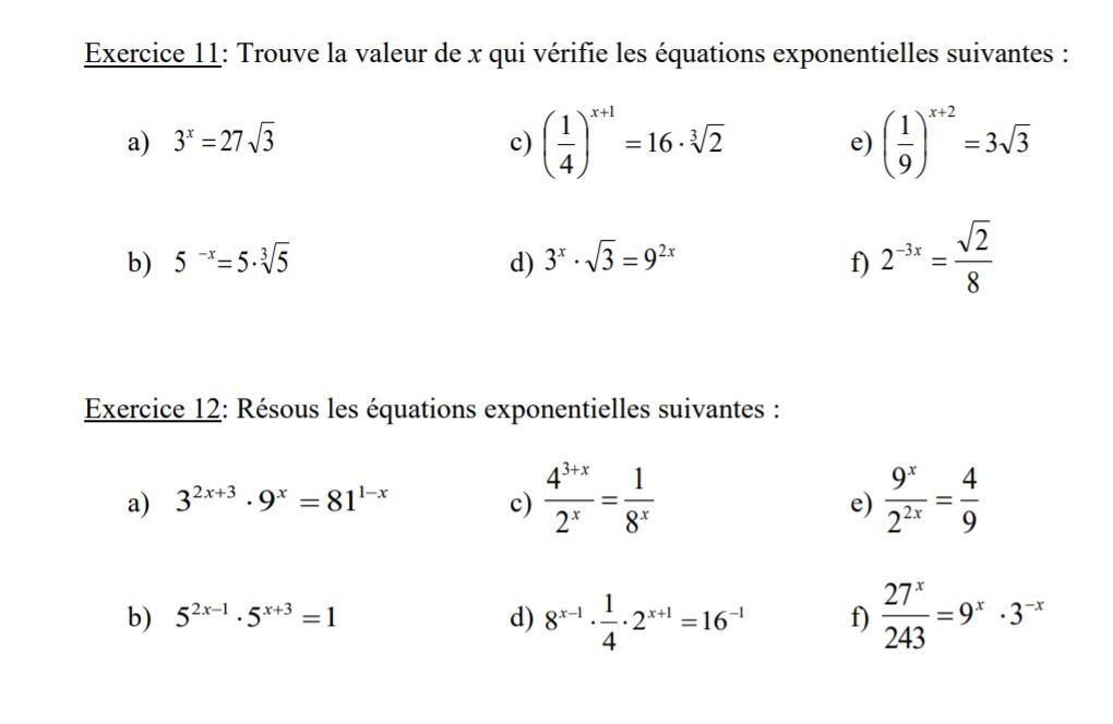 Tu devrait pouvoir ressourdre tous ces exercices à l'aide des lois des exposants :