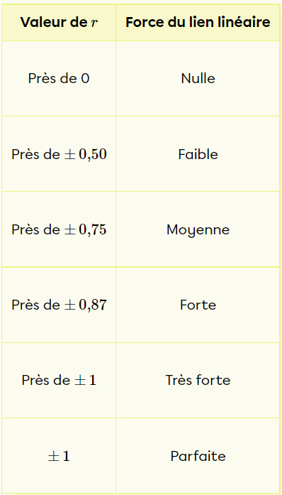 Grâce à cette charte, tu pourras ensuite évaluer la force de corrélation de ton diagramme: