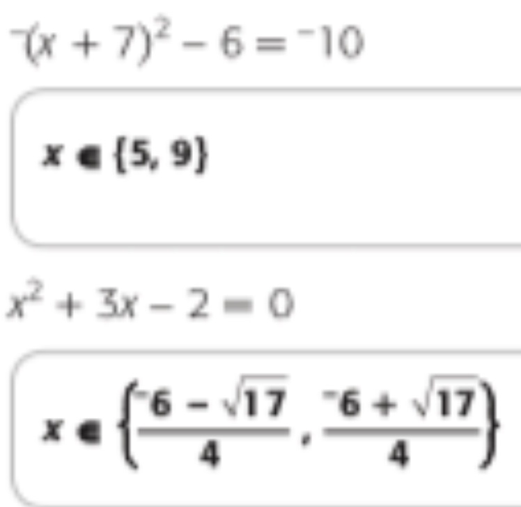 c le corrigé du prof mais la réponse du premier équation n’est pas x E {-9, -5} et pour le deuxième, est-ce qu’on peut remplacer le -6 par -3 et le 4 par 2?