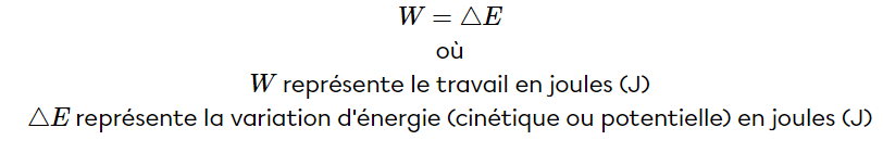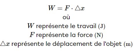 En effet, le travail W (qui correspond aussi à la variation d'énergie) est égal à la force exercée sur l'objet multipliée par son déplacement.