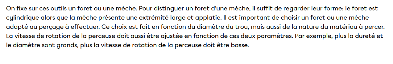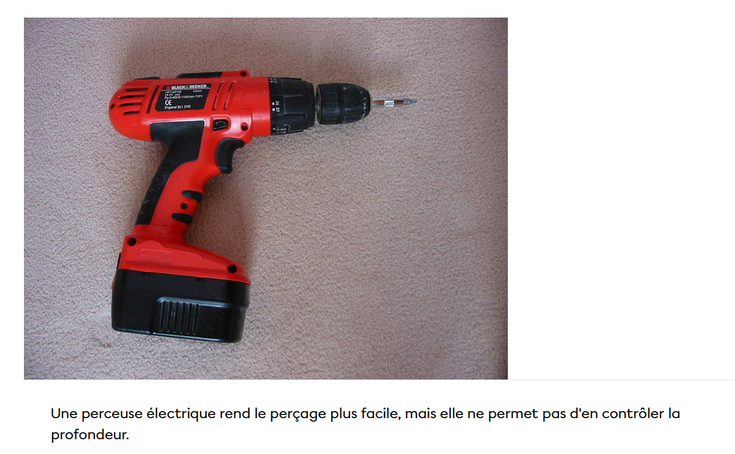 Le perçage est employé en utilisation domestique afin de glisser une cheville dans l'orifice qui va elle-même accueillir une vis, destinée la plupart du temps à fixer un objet contre un mur.
