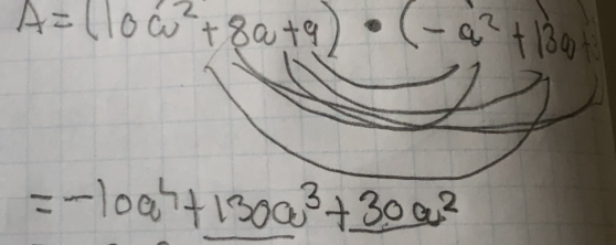 (10a² + 8a + 9)(-a² + 13a + 3) ne donne pas -10a^4 + 130a^3 + 30a²