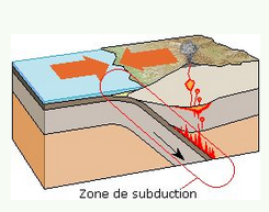 On peut voir que la plaque océanique entre <<en contact>> avec celle de la plaque continentale (c'est le bord du continent, près de l'océan, pas le centre).