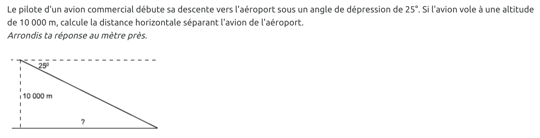 Donc avec la trigonométrie tu peux trouver la distance qui sépare l'avion et l'aéroport.