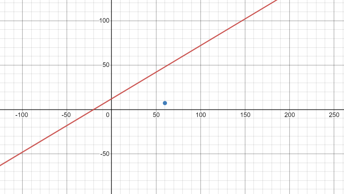 L'équation de la droite d1 est y=3/5x+12 et les cordonnée de d2 sont (60;7,2)