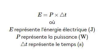 Pour ce faire, tu dois utiliser la formule de l'énergie électrique afin de trouver l'énergie dépensée. La voici: