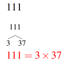 L'arbre des facteurs de 111 se compose 3 et 37 (tous deux des nombres premiers, tu ne peux pas plus les décomposer)