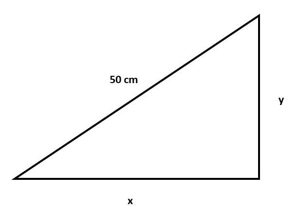 Pour un triangle rectangle, le côté le plus grand est toujours l'hypoténuse. Les autres côtés ne sont pas connus et tu peux donc les noter comme \(x\) et \(y\). À partir de là, tu écris ce que tu sais de la situation à l'aide d'expression mathématique :