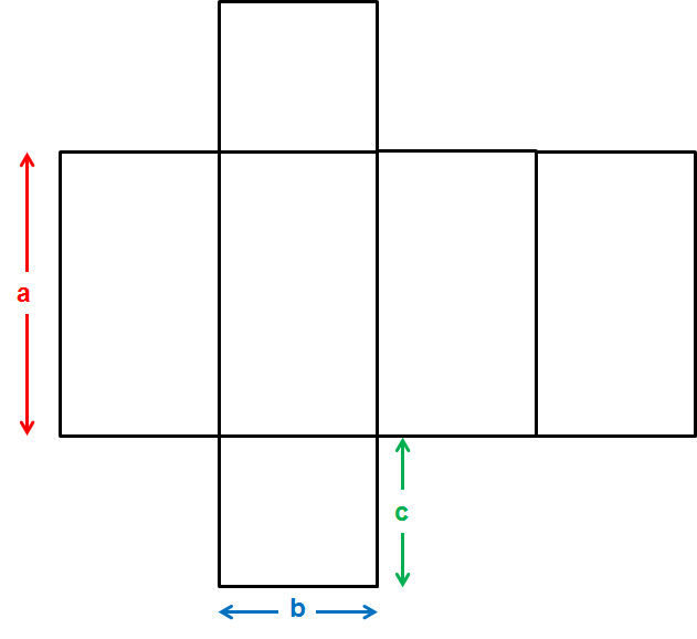 Une fois que tu as toutes les dimensions que tu as besoin, tu es rendu à dessiner le développement de la boite. Le développement est simplement une représentation plane de l'objet. À partir du développement, tu devrais être capable de plier chacun des côtés afin d'obtenir l'objet que tu recherches. Voici un exemple pour un prisme à base rectangulaire: