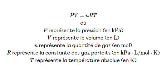 Pour trouver la réponse à cette question, tu dois utiliser la loi des gaz parfaits, la voici: