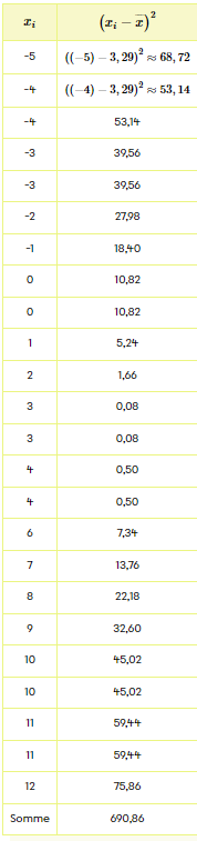 3) Calculer la somme des carrés des écarts à la moyenne. Voici un exemple sous forme de tableau: