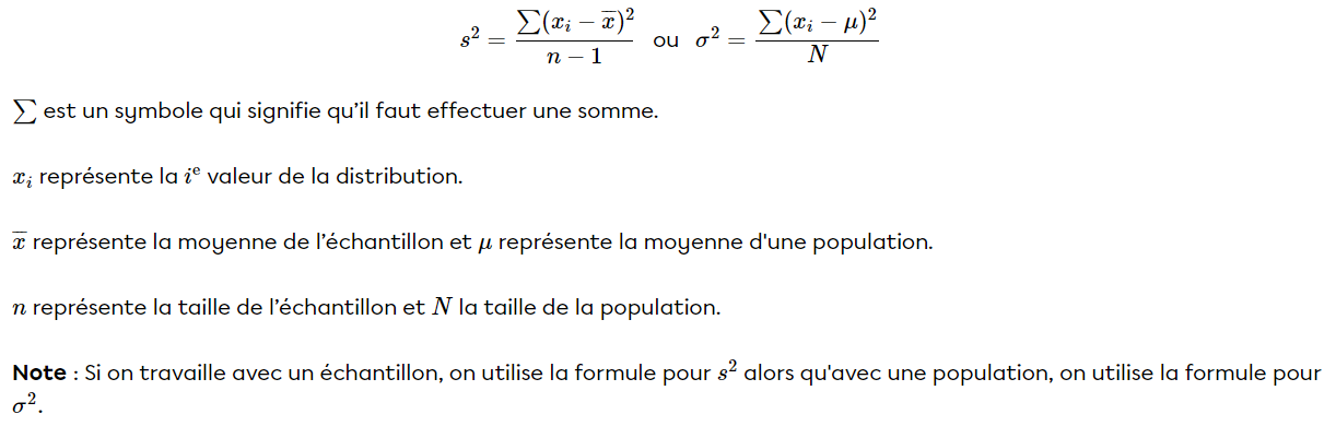 Ensuite, tu pourras calculer l'écart type, qui est simplement la racine carrée de la variance.