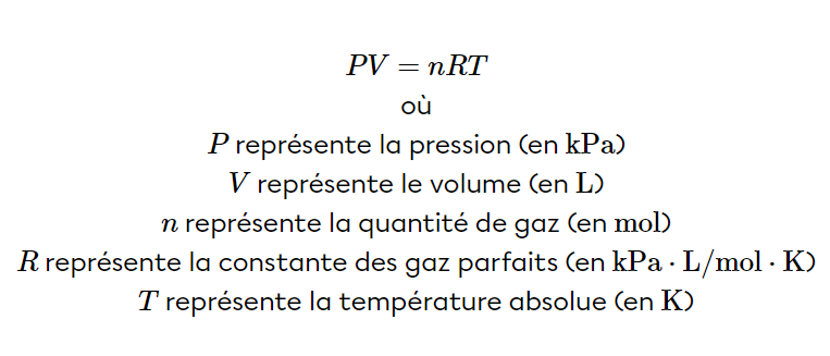 Dans cette équation, uniquement n1 est inconnu, ce qui correspond à la quantité d'oxygène en moles.