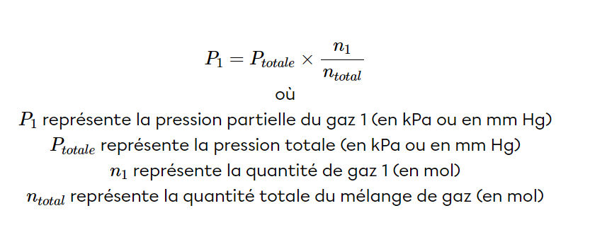 Pour trouver le nombre de bonbonnes que l'on doit utiliser, il faut connaitre la quantité d'oxygène dans le caisson. Si on utilise la loi des pressions partielles, on peut trouver cette valeur: