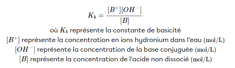 L'équation de la constante d'acidité devra cependant être remplacée par celle de la constante de basicité: