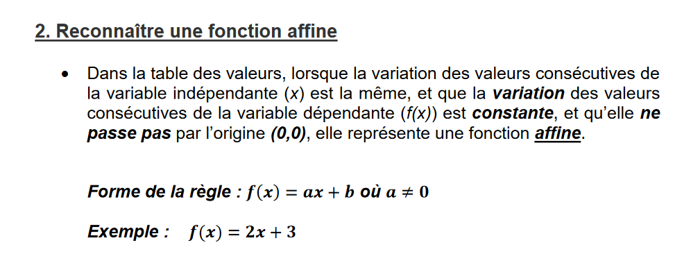 Bref, voici le lien vers la fiche d’où proviennent les informations au sujet des fonctions affines :