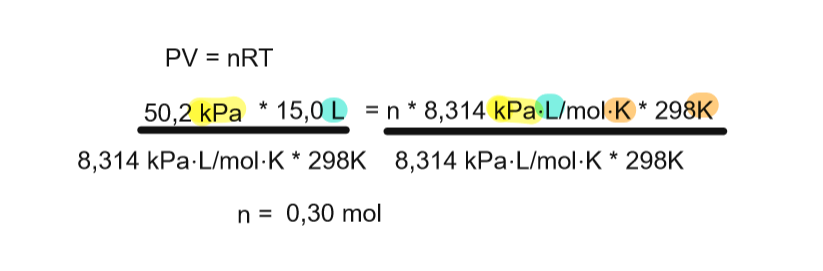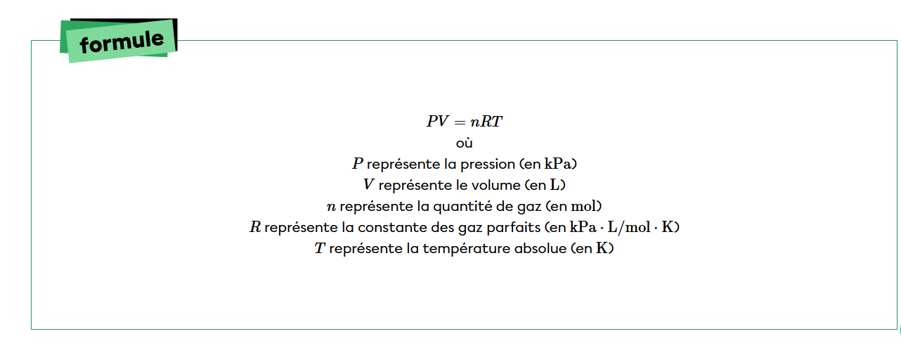 Aussi, comme tu vois, les unités choisies correspondent à ceux de la constante des gaz (kPa, L et K). C'est important de le vérifier, car ça peut tout changer ton calcul! :(