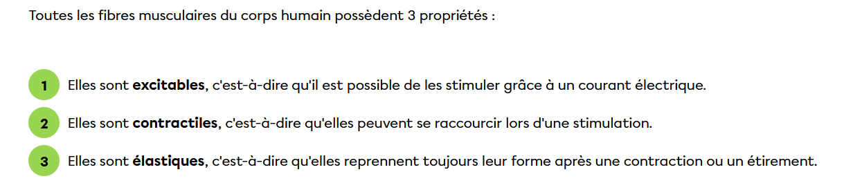 Il faut savoir que les fibres musculaires possèdent certaines caractéristiques.
