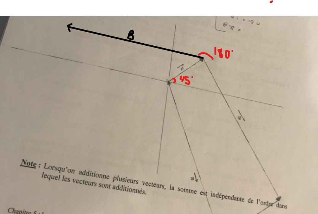 J'arrive à une réponse dont la grandeur est de 13u avec une orientation de 296°. (Ce n'est pas la réponse qui m'intéresse, mais plutôt est-ce que j'ai bien fait ce problème par la méthode de l'enchaînement.)