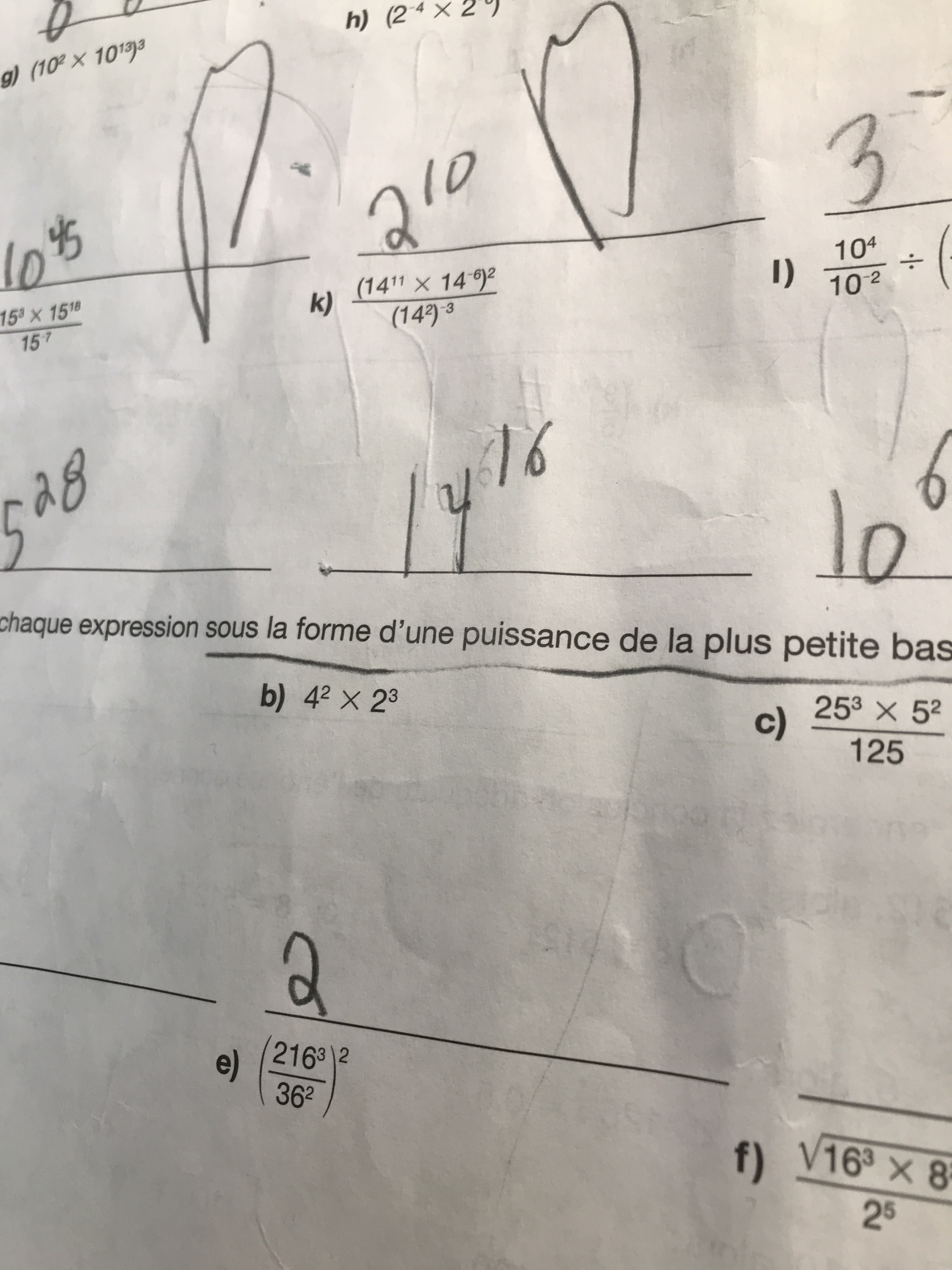 Tu sais que lorsque tu multiplies deux puissances de même base, tu dois additionner les exposants.
