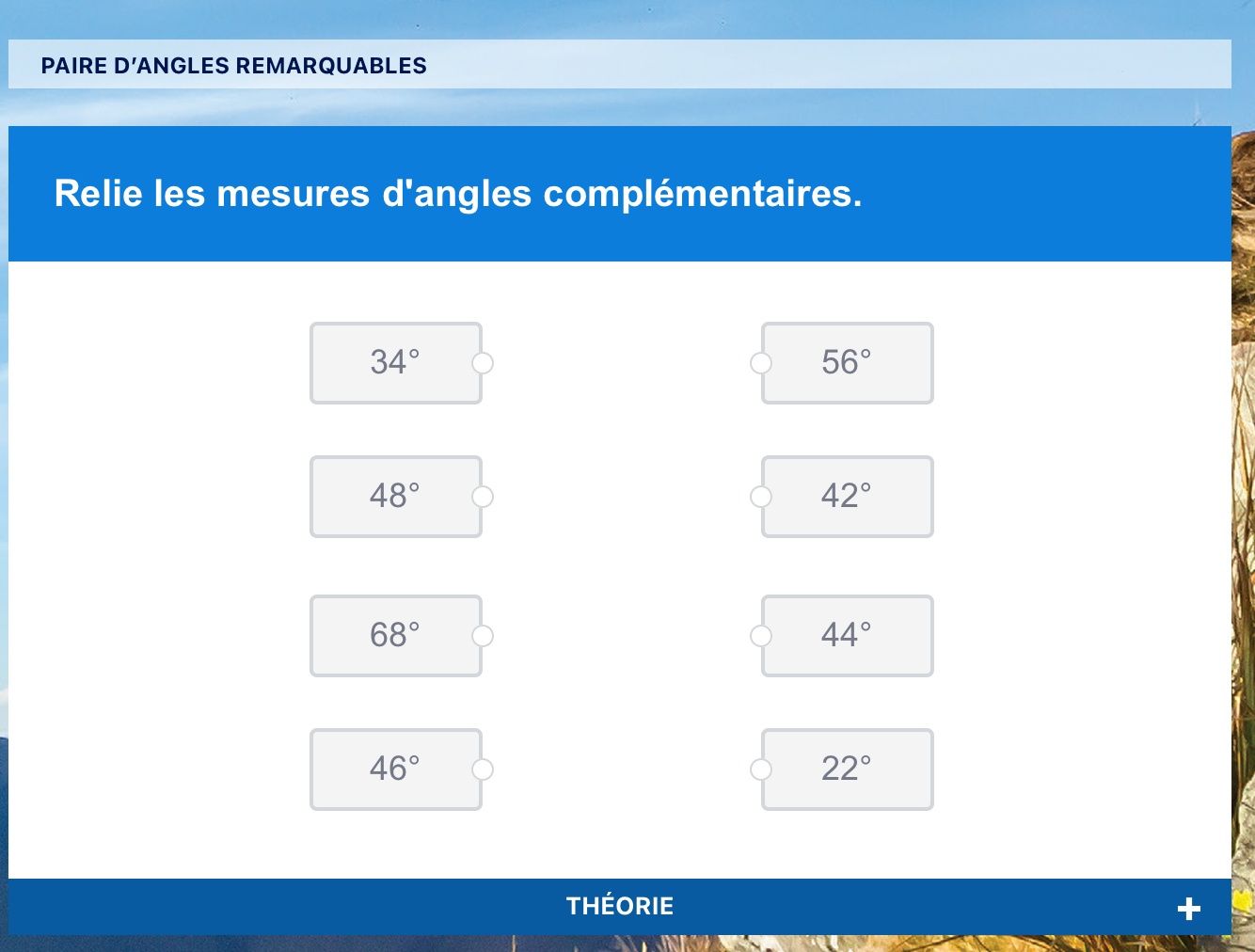 Les angles complémentaires sont des angles dont la somme des mesures est égale à 90°.