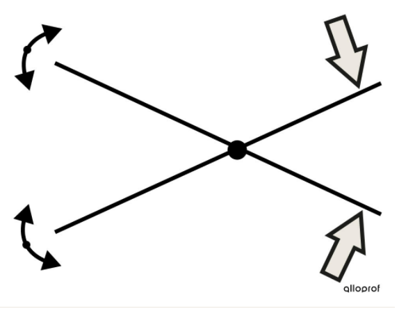 Un schéma de principe est un dessin simplifié de ton objet, où tu dois identifier les forces et les mouvements engendrés par ces forces. Également, tu dois indiquer les liaisons utiles pour la connexion des pièces. Voici un exemple de schéma de principe pour une paire de ciseaux: