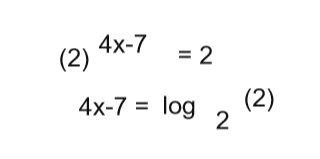 Il faut d'abord isoler le (2) exposant (4x-7), pour arriver à faire la formule mentionnée plus haut.