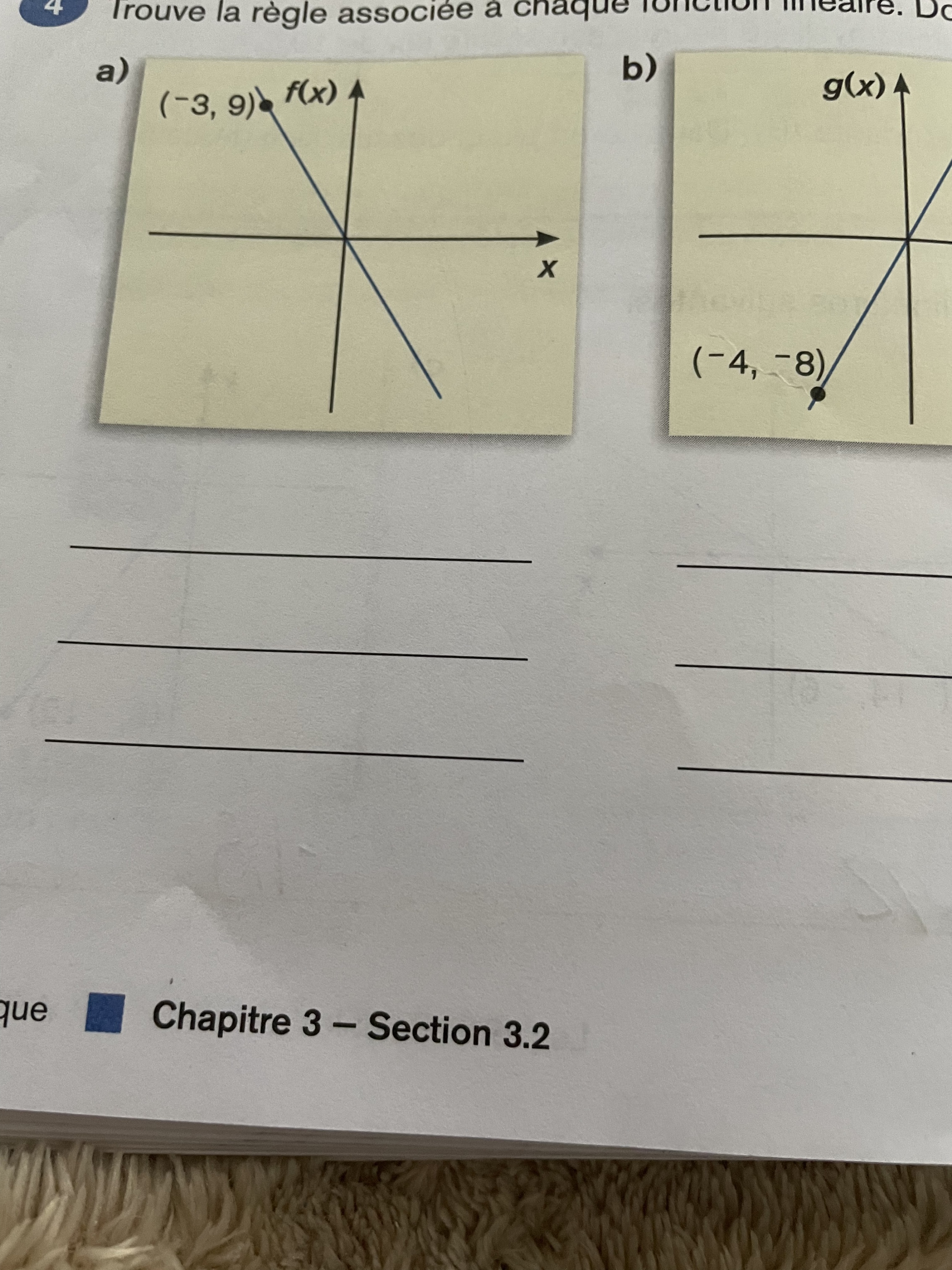 La question est : trouve la fonction linéaire. Donne ensuite l’image de -4
