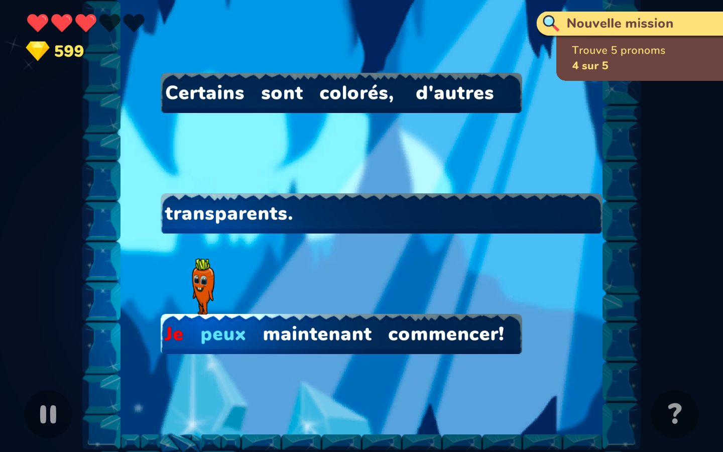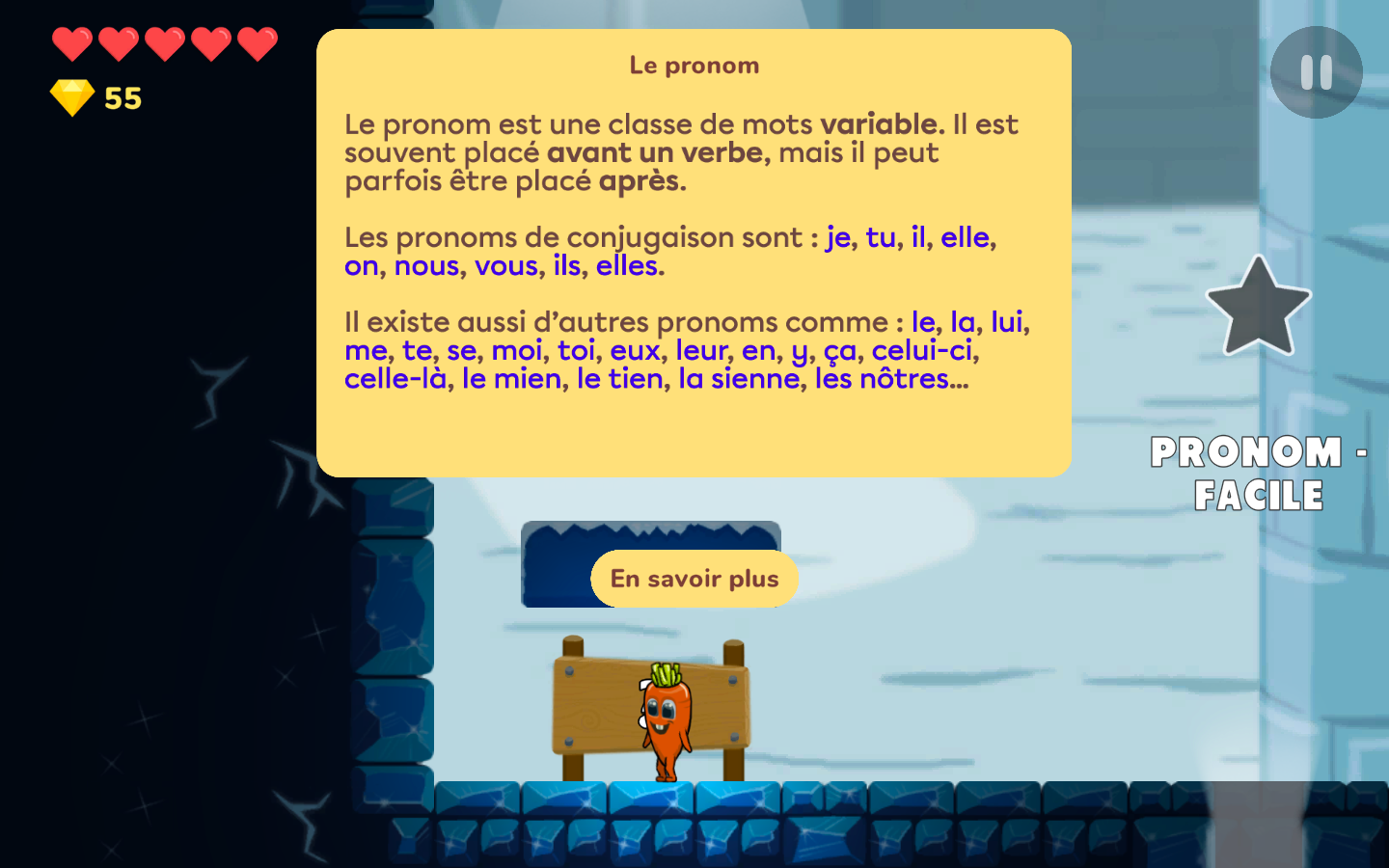 J'ai essayé le jeu et je me suis rendue au 2e niveau des pronoms difficiles et j'ai effectivement vécu le même problème que toi.