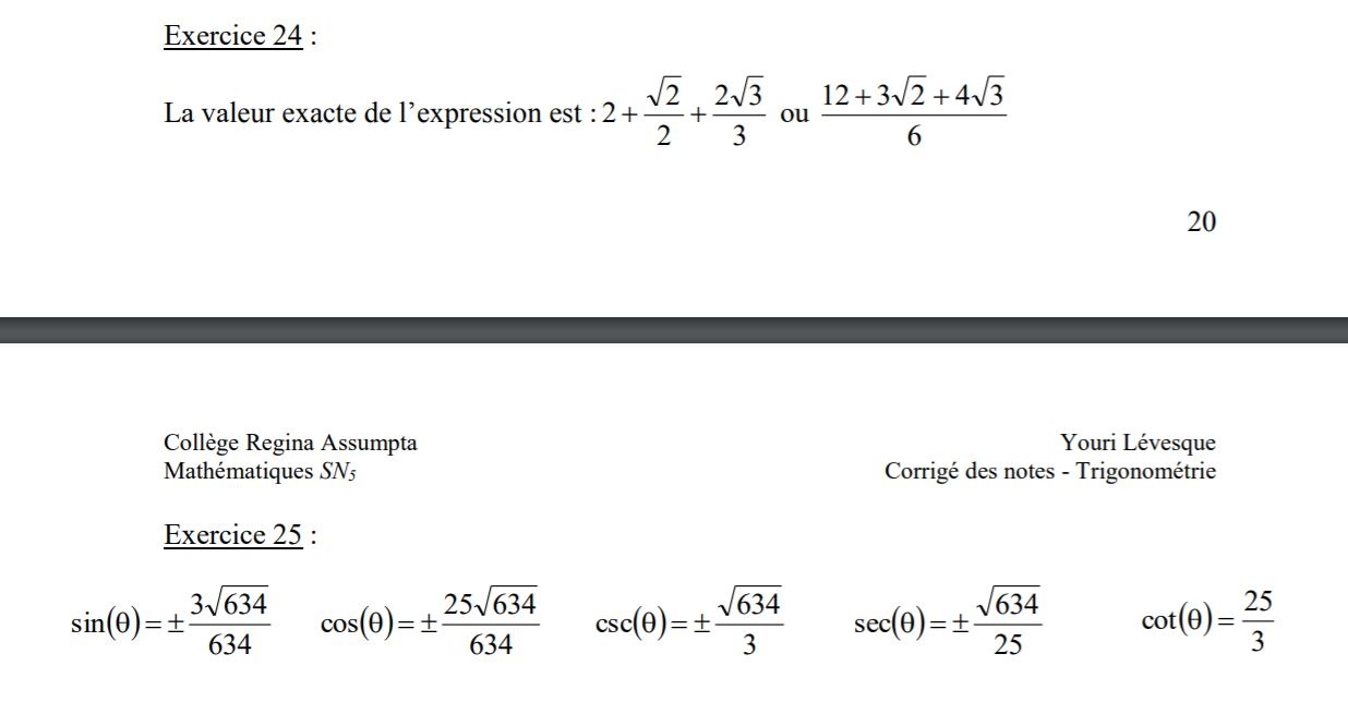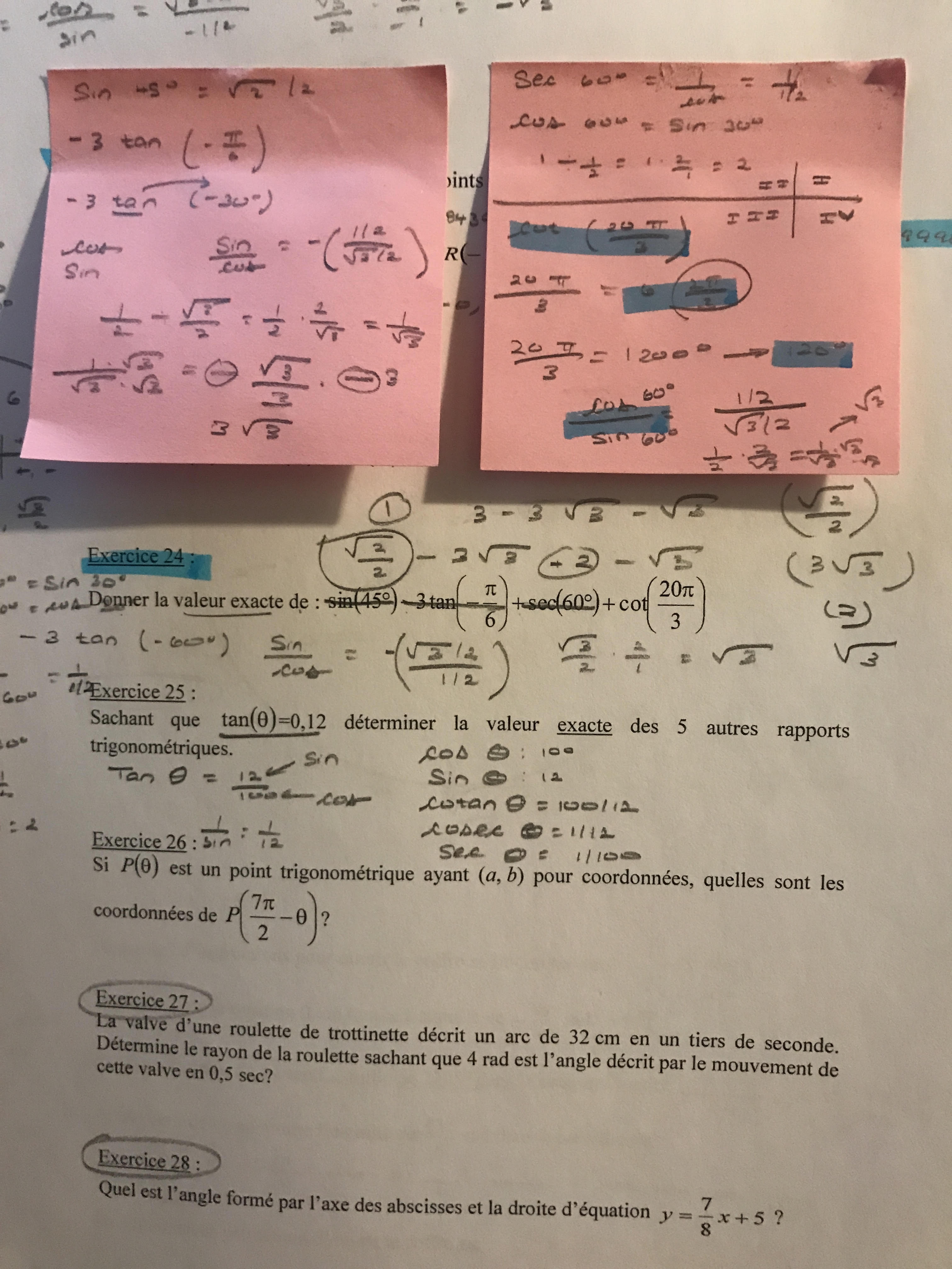 La première, c'est que j'ai fait une erreur à l'exercice #24, mais je ne sais pas trop où. (Ma démarche est sur les posts-its.)