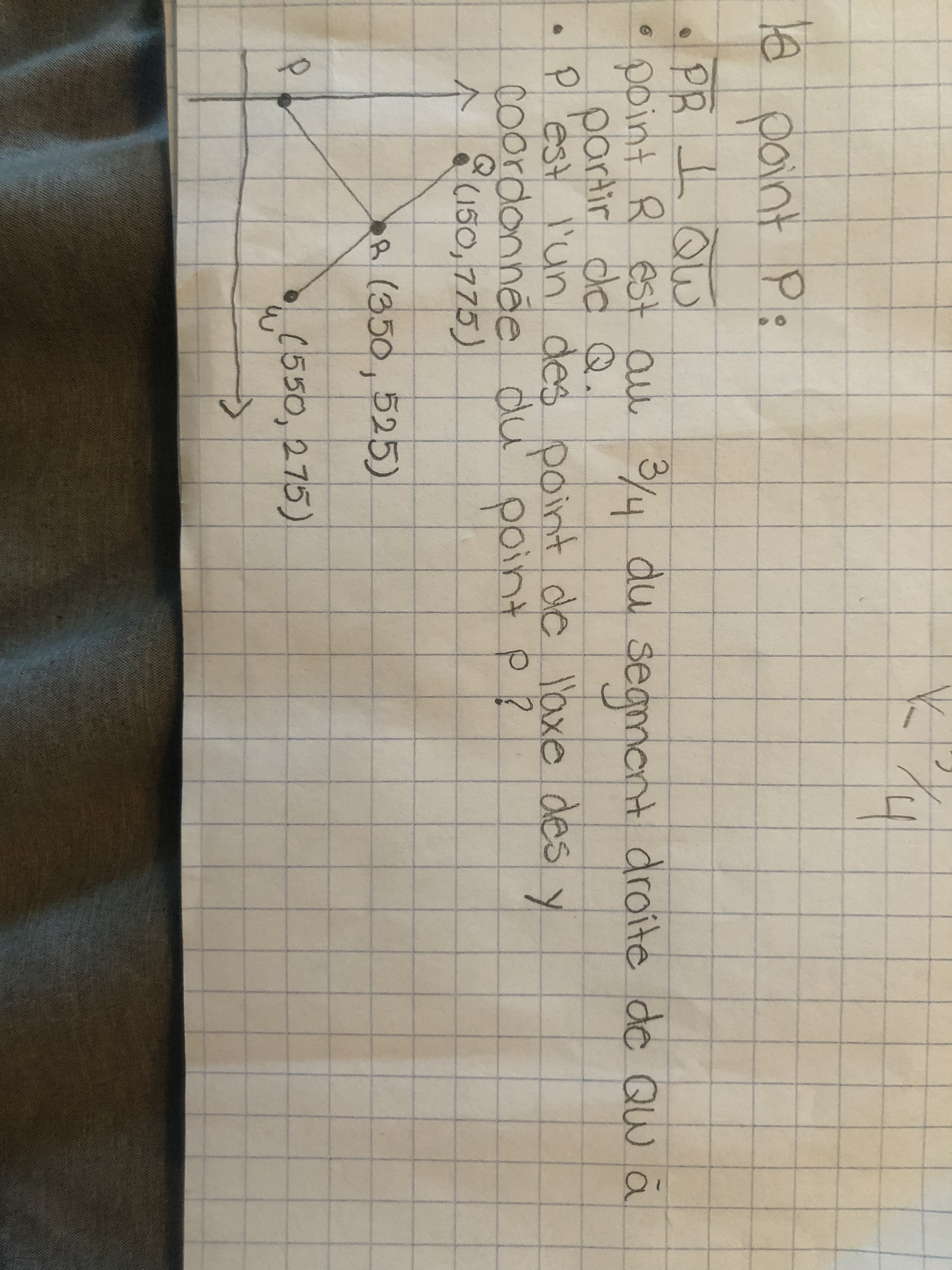 On sait que la coordonnée en x du point d'intersection R est 350 :