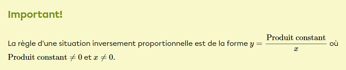 CeSt quoi la règle de cette tableau?? je sais que c'est une inverse car un augmente l'autre descend .