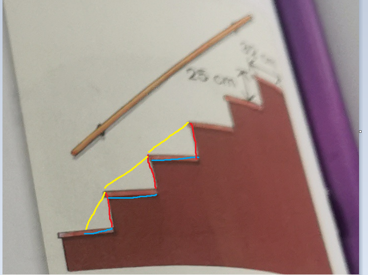 si tu utilises Pythagore, tu pourras trouver en jaune, la longueur de la rampe ;)