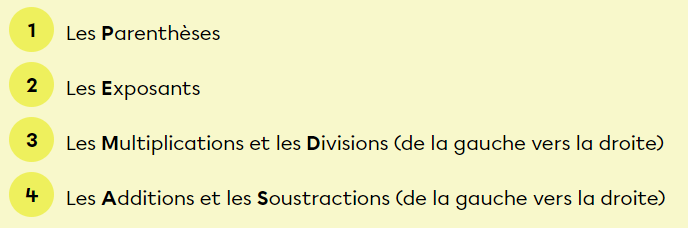 Pour plus d'informations, consulte ce lien: https://www.alloprof.qc.ca/fr/eleves/bv/mathematiques/la-priorite-des-operations-m1061