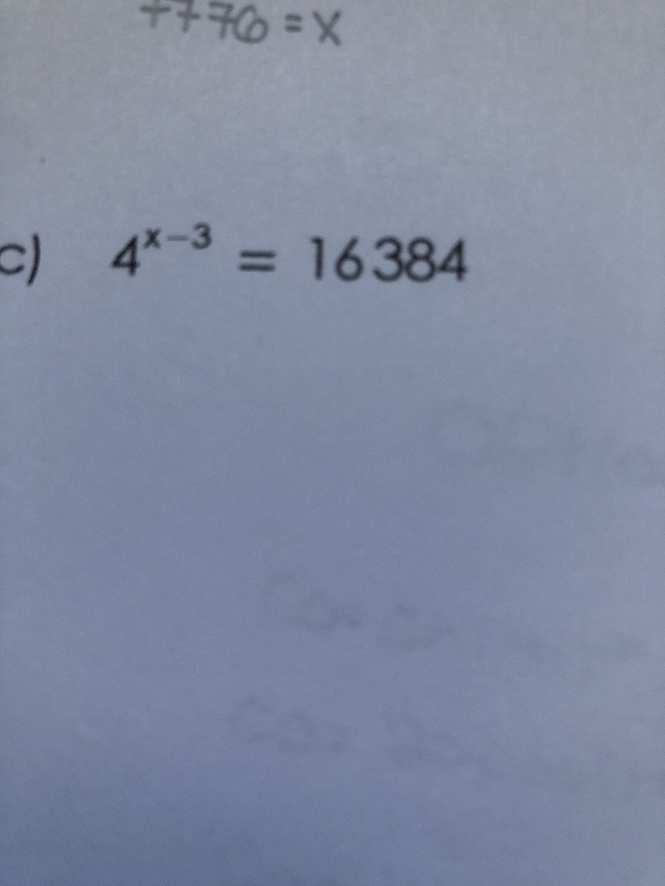 alternative : \(16\,384\) est une puissance de \(4\). C'est la 7e puissance de 4 (tu peux vérifier avec ta calculatrice). \[4^{x-3} = 16\,384\] \[4^{x-3} = 4^7\]On a une égalité de deux puissances de même base, \[\textcolor{Blue}{4}^{\textcolor{Red}{x-3}} =\textcolor{Blue}{4}^{\textcolor{Red}{7}}\]les exposants sont donc égaux : \[\textcolor{Red}{x -3} \, \textcolor{Black}{=} \, \textcolor{Red}{4}\] \[\dots\]