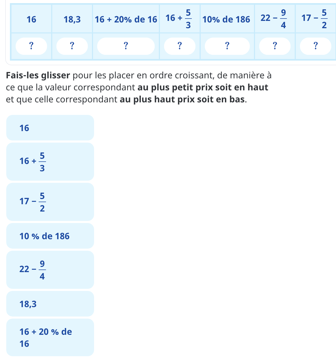 Afin d’y parvenir, tu devras nécessairement trouver le pourcentage d’un nombre et transformer des fractions en nombres décimaux. Voici des fiches qui devraient t’aider à y parvenir :