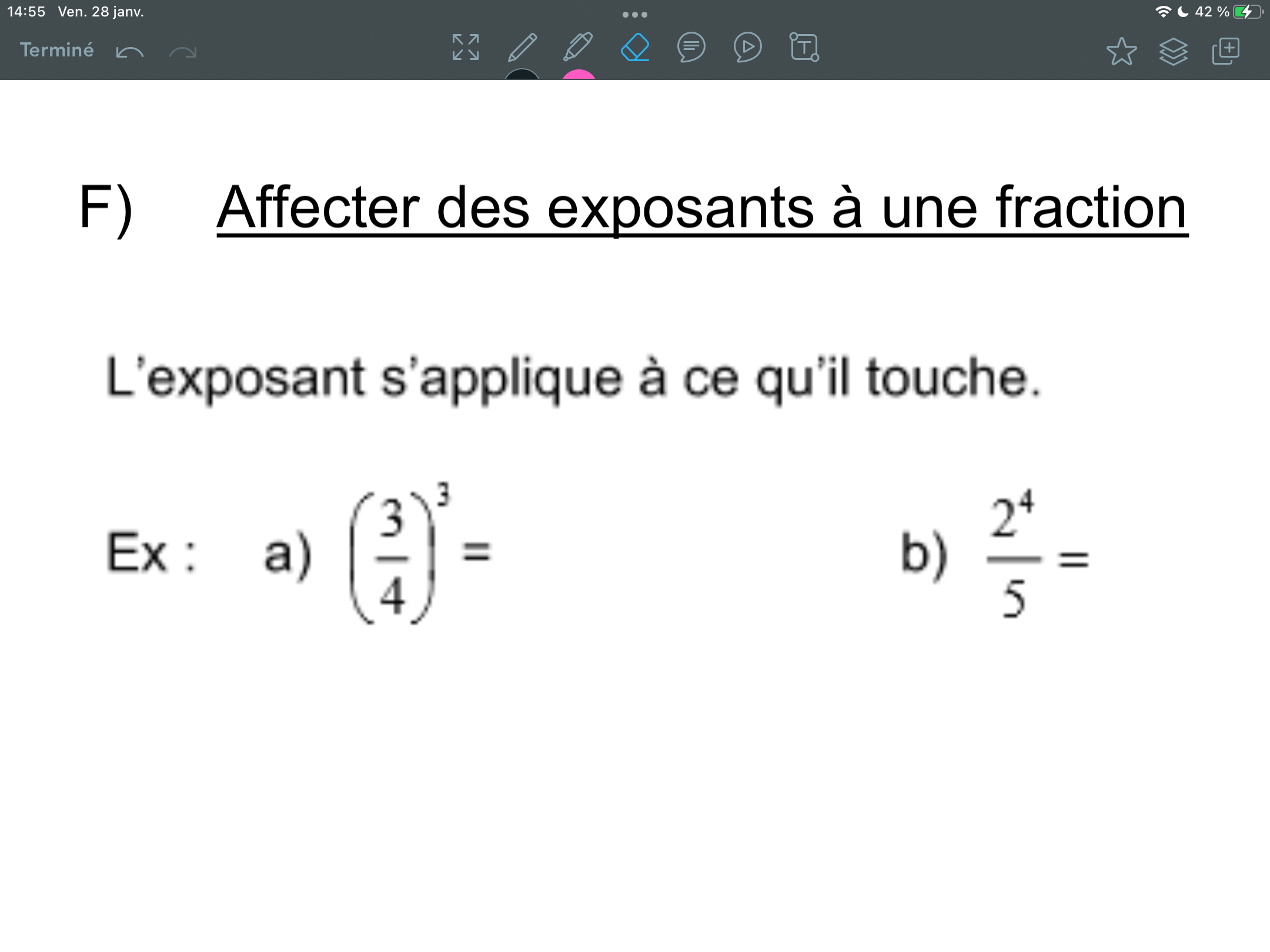 c'est facile c'est comme avec des chiffre naturel il suffit de exponentialiser le numérateur et le dénominateur :)