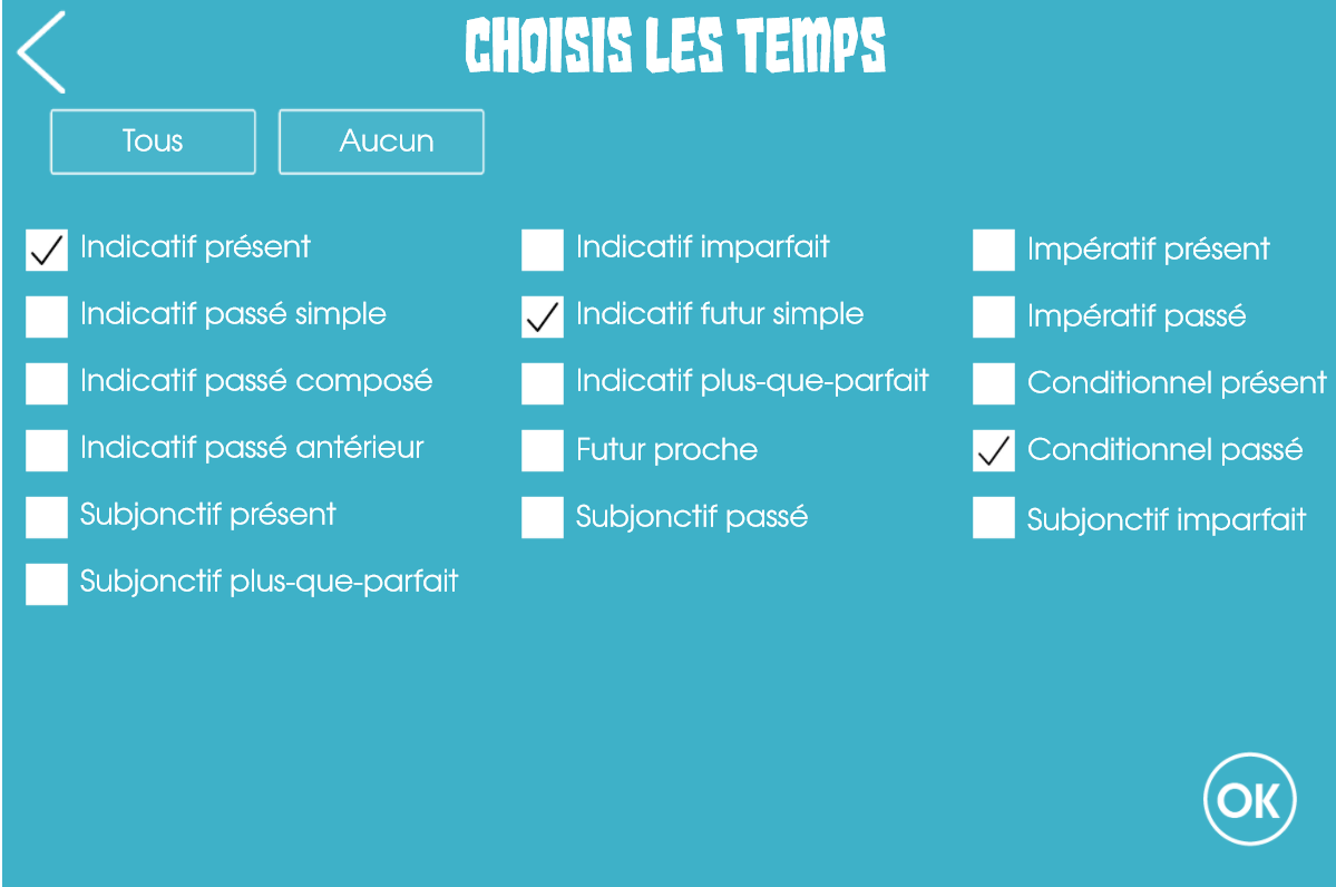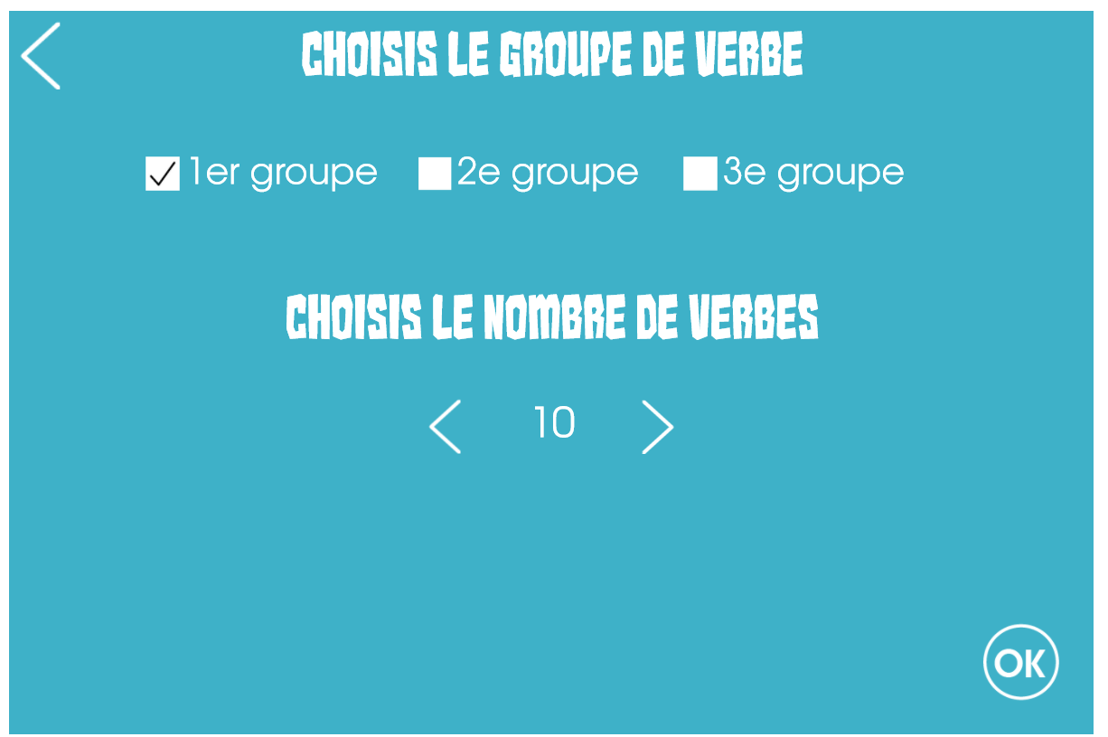 Ensuite, choisis ton groupe à étudier ainsi que le nombre de verbes désiré.