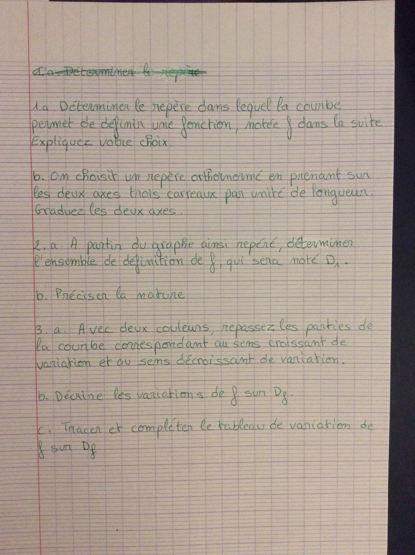 Ensuite, je crois qu'on te demande de créer une fonction de ton choix. Rappelle-toi qu'une fonction a une seule valeur de y pour chaque valeur de x.