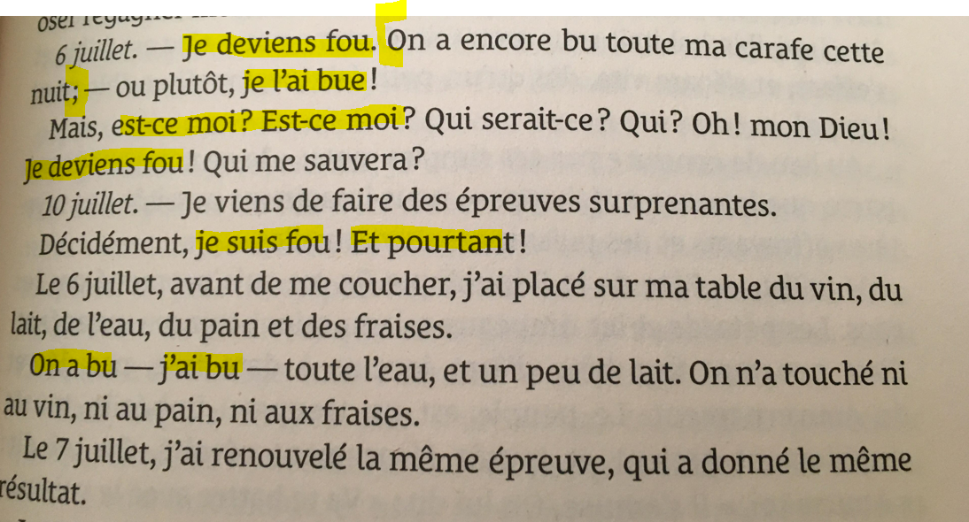 Ta tâche consistera donc à trouver des passages qui prouvent que le Horla existe. Par exemple, des actions qui le rendent réel.