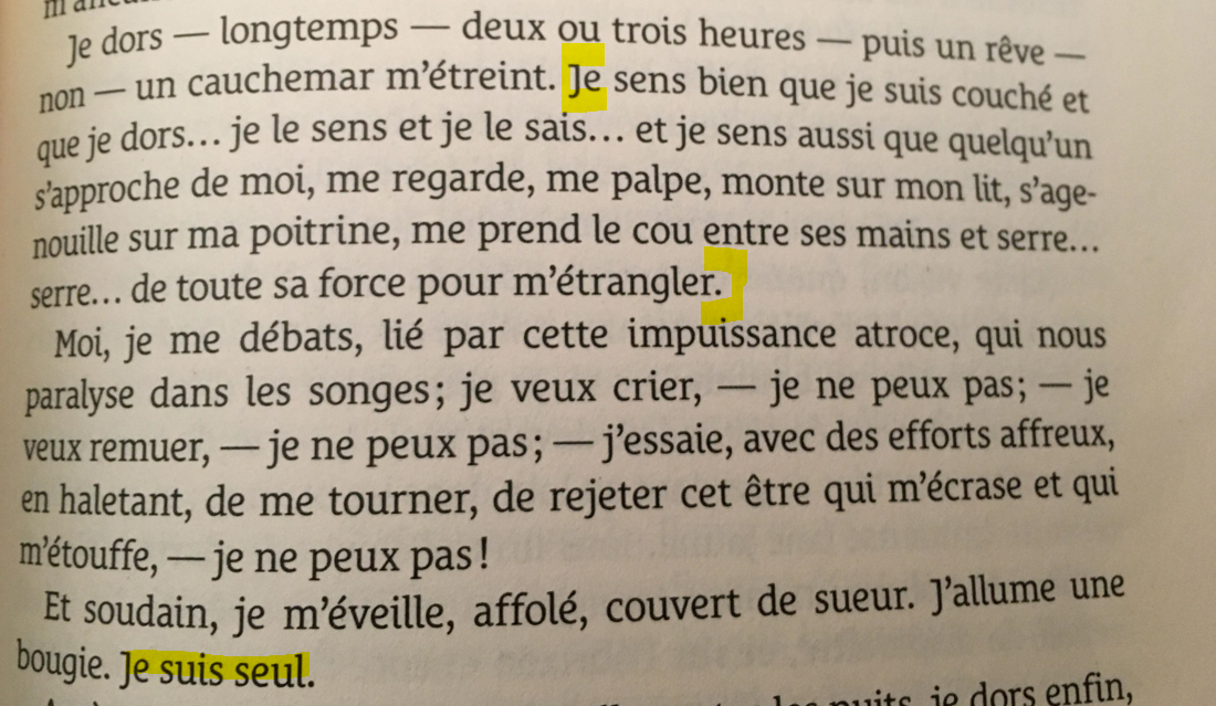 Les autres passages surlignés dans le texte montrent des preuves que le Horla n'existe pas.
